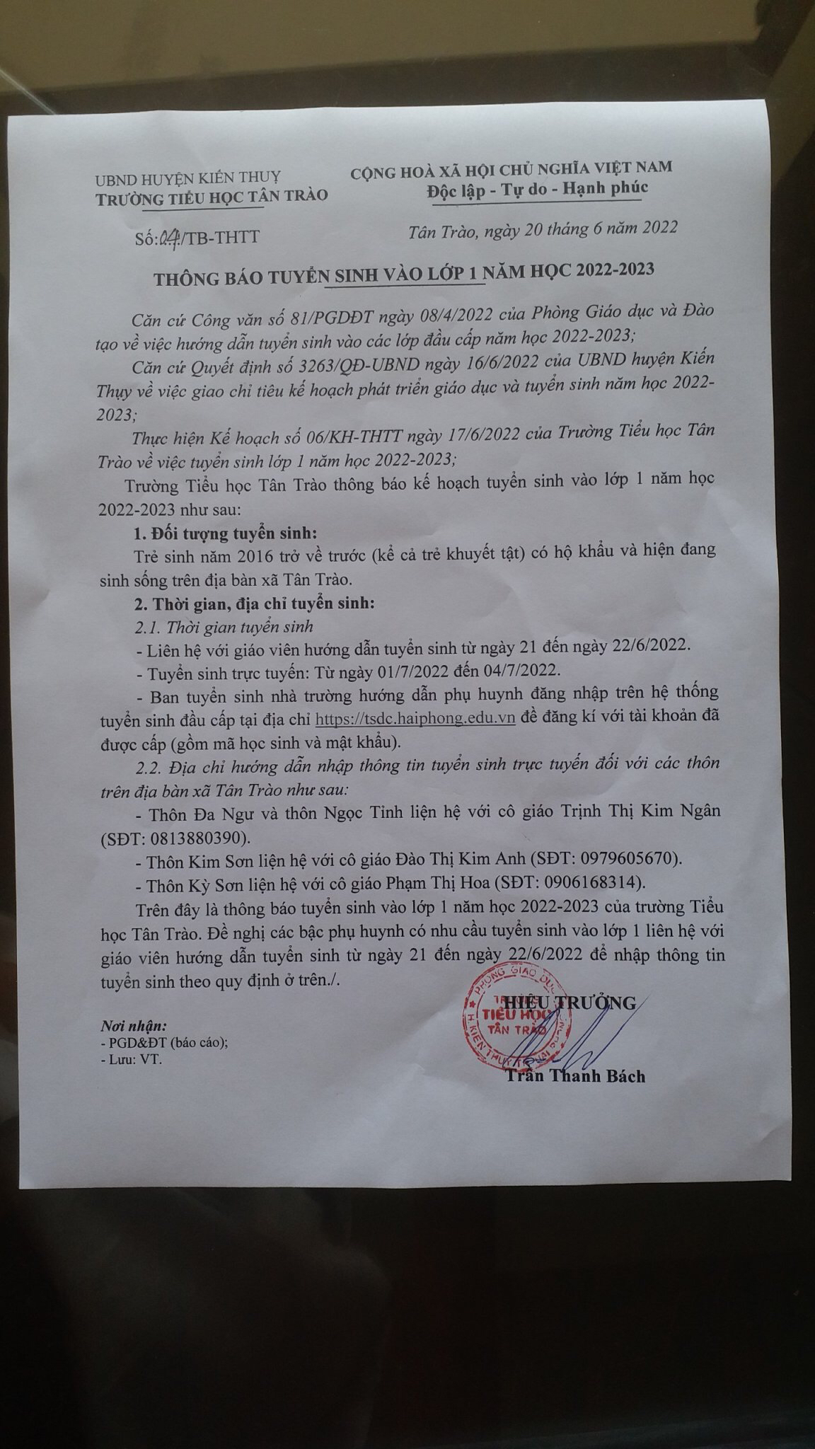 TIỂU HỌC TÂN TRÀO
